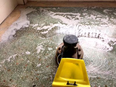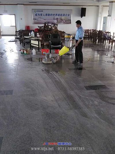 水磨石地面由于日常清潔不能做徹底,所以時間久了地面污漬越積越多,人工清潔不能達到要求,所以必須使用洗地面設備進行水磨石地面的清洗或是翻新,才能使水磨石地面光潔如新,湘潭潔士水磨石翻新公司在水磨石清洗、清潔、翻新、晶面等方面積累了豐富的經驗,所施工的項目受到客戶的一致好評,下圖為湘潭潔士水磨石翻新公司為客戶進行水磨石的清洗……